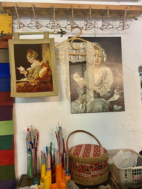La brocante est tenue par Corinne, une créative, relieuse artisanale de formation, tellement passionnée de ces objets qu'elle connait presque toutes ses références et elle sait te dire en quelques seconde si ce que tu cherches tu vas le trouver et où.